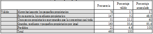 Palabras clave: Tierra, Actores agrarios, Opiniones, Concentración, Estado.