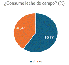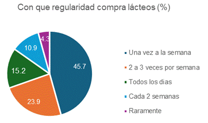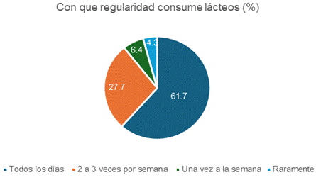 Luego, con el objetivo de empezar a profundizar en el consumo de los productos, se preguntó sobre el consumo de lácteos, en general (frecuencia de consumo y regularidad de compra) y de leche de campo, en particular (Figura N° 3, N° 4 y N° 5).