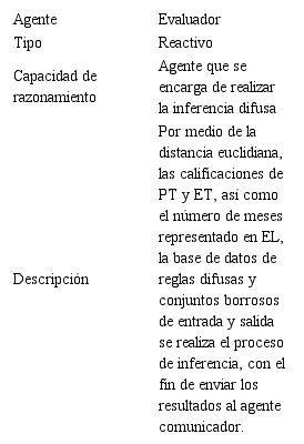 En consecuencia, para el diseño e implementación de la aplicación, específicamente en lo referente a lógica difusa, se utilizó un algoritmo para la generación automática de reglas durante la etapa estática de dicha lógica, después y específicamente en su etapa dinámica, se utilizó agentes de software con el fin de generar recomendaciones en relación a 3 procesos de evaluación, que a saber son: prueba técnica, entrevista técnica y experiencia laboral; la aplicación Web desarrollada incluye características para la parametrización de variables difusas diferentes a las mencionadas anteriormente y sus correspondientes intervalos, además la configuración de funciones de pertenencia triangular y trapezoidal.