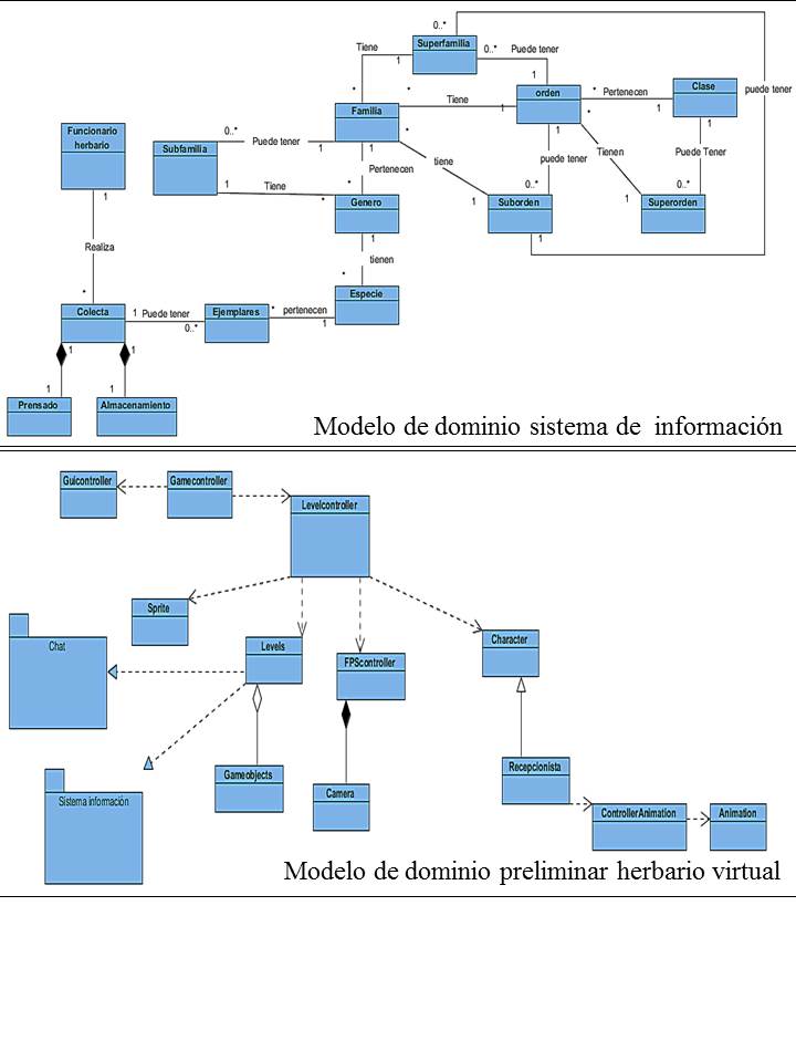- Análisis de requerimientos, donde se definen los requerimientos del sistema mediante la recolección de la información y la familiarización de la temática, resultado de varias entrevistas y visitas a diferentes herbarios, información con la cual se realizan los modelos de dominios del sistema (Figura 1).