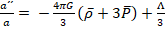 (2)where a is the scale factor, which only depends on cosmological time, , is the cosmological constant, and are the average density and pressure respectively. Symbol prime represents derivatives with respect to cosmological time. The Friedmann equations describe the evolution of a homogeneous and isotropic universe, which is in an increasing expansion.