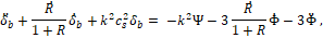 (9)Thus, (6) is a second order linear differential equation for baryon fractional perturbation . It is written in terms of wave number , since it has applied Fourier transform to it, indicating that BAO are analysed in term of lenght scales instead of spatial coordinates.