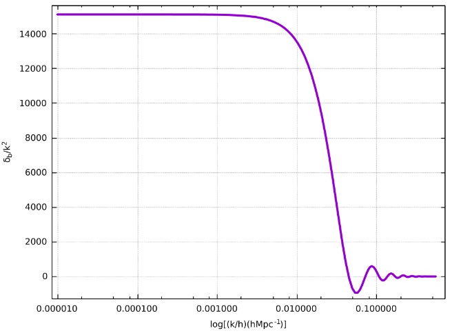 If graphing vs (figure 6), it can be noted that the oscillations are not present at high scales. This is because starts to oscillate only for scales inside the Hubble radius where there is a causal interaction between photons and baryons, which produces the pressure to lead baryonic matter to oscillate.