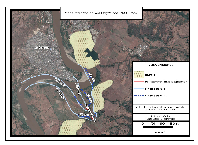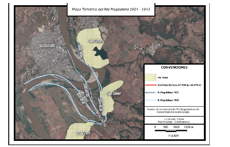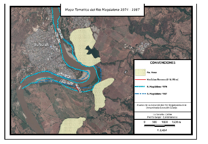 Abstract: A multitemporal analysis of the Magdalena River was carried out in the Municipality from La Dorada-Caldas, to obtain a basic model of the evolution of the channel of this drainage in the El Conejo curve. A historical count was made between the years 1924 and 2016, using tools S.I.G. The Magdalena River in the curve El Conejo of this locality, has undergone an abrupt behavior of approximately 1540 meters; Atypical in the evolution of its channel, evidenced mainly in a period between the years 1952 and 1962.