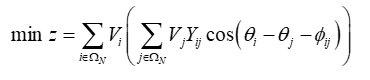 (8)objetivo definida en (1) representa las PPA en líneas de distribución como una función de las magnitudes y ángulos de las tensiones en todos los nodos del sistema y los pará