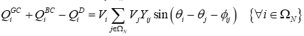 : Potencia reactiva generada en el nodo i por un GC [VAr].