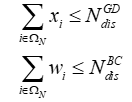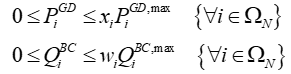 Las expresiones (7) y (8) definen la cantidad máxima permitida de GD y BC a ubicar en el sistema y las características binarias de las variables de decisión de ubicación de GD y BC, respectivamente.