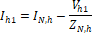 (7)Cuando se halla esta impedancia Norton para el armónico h, se procede a calcular su correspondiente corriente Norton con (8), o también con (9):