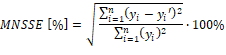 (THD de Corriente). El índice de error MNSSE (Modified normalized sum of squared error, por sus siglas en inglés) también es calculado para las formas de onda, los espectros armónicos y los THD. Este índice estima el porcentaje de error cuadrático entre un registro de datos estimado y un registro de datos medidos y lo reporta en porcentajes.