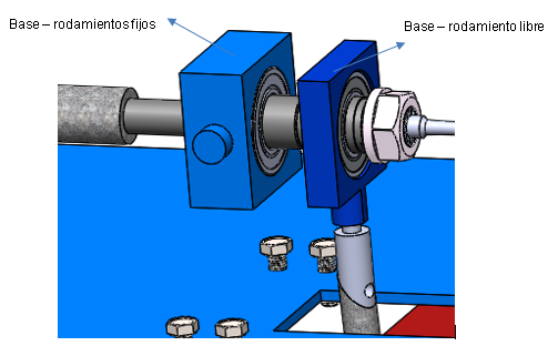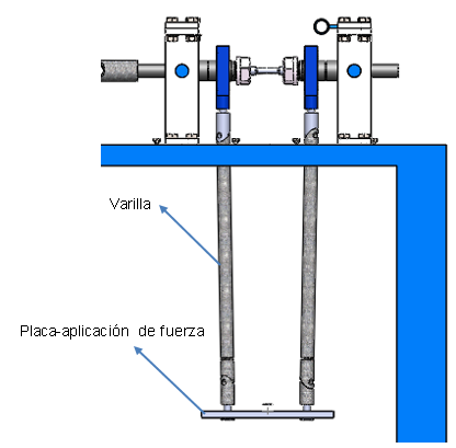 Para la transmisión de la carga a los rodamientos libres, se usaron barras articuladas, como se muestra en la figura 12, estas barras están roscadas a la base del rodamiento libre, transmitiendo la fuerza aplicada en la placa.