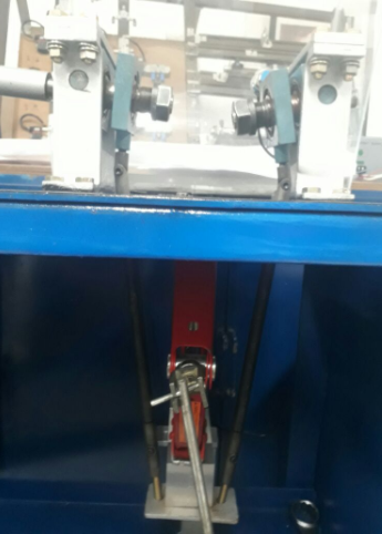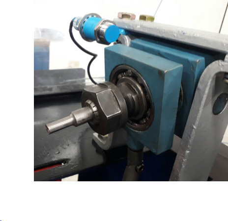 Este sistema hace que la base del rodamiento pueda girar con respecto a la estructura, este movimiento es de vital importancia para el funcionamiento de la máquina, pues garantizara que se presente el momento flector en la probeta. Esta estructura se realizó en lámina de acero ASTM A36, se doblaron las esquinas correspondientes a la fijación con la estructura de la máquina, también se realizaron agujeros de 1 cm para los tornillos usando el taladro