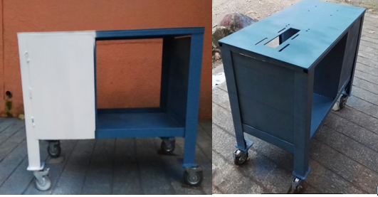 La estructura está cubierta en lámina de 3/16 in, también se usó esta lámina para los cajones y la puerta,