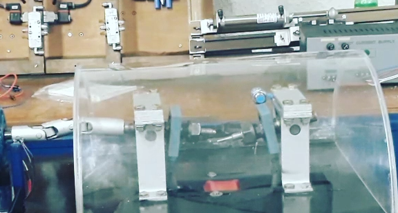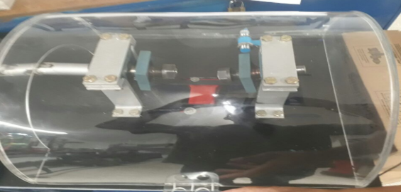 Como medida de protección adicional se diseñó una cubierta en acrílico de 5 mm de espesor, la cual protege a la persona que realiza el ensayo de los elementos móviles de la máquina, esencialmente de la probeta de ensayo. Existe la posibilidad de que la probeta o la tuerca no se apreté de manera correcta y debido a las altas revoluciones que se pueden presentar pueden generar un peligro para la integridad del estudiante o investigador. También aísla los componentes móviles para que no exista contacto directo entre ellos y la persona que realiza la práctica de fatiga.