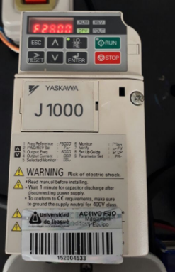 Para tener un mejor control en la realización del ensayo en cuanto al valor de los ciclos de esfuerzo por minuto, se usó un variador de frecuencia marca YASKAWA de referencia J100, este variador será el encargado de cambiar las revoluciones por minuto del motor. Esto es útil porque al poder controlar las revoluciones del ensayo, se controla el ruido y vibración que puede producir la máquina de fatiga. En la figura 21 se aprecia el variador de la máquina de fatiga.