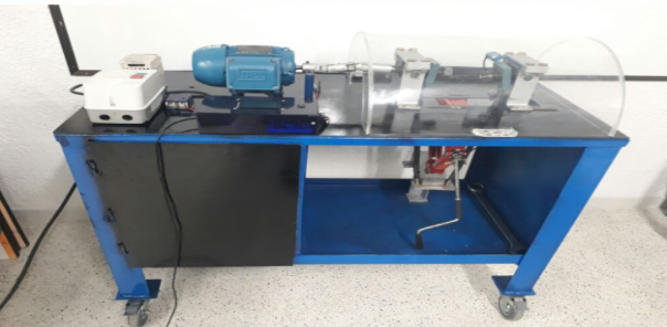 En la figura 22 se aprecia la máquina de fatiga en flexión rotativa de alta velocidad de la universidad de Ibagué completamente terminada. Esta máquina puede ser usada con fines educativos e investigativos.