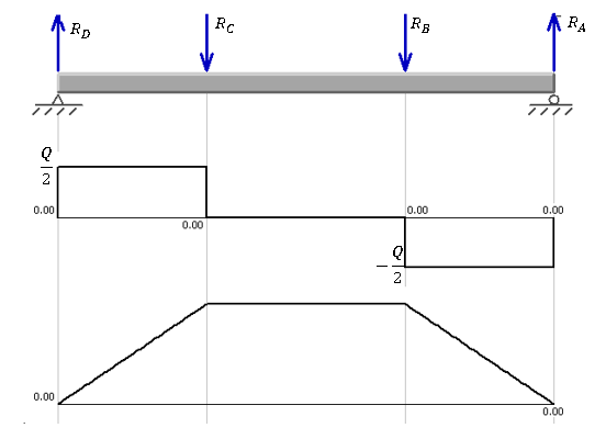 En la figura 3 se aprecia el diagrama de fuerzas y momentos del sistema. Se aprecia que el momento flector máximo lo soportara la probeta, esto es conveniente para conseguir el fallo de la misma.