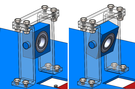 Estas estructuras se encargaran de soportar la base de los rodamientos fijos, para ello la estructura cuenta con un agujero en cada uno de sus lados, estos agujeros coinciden con las pestañas cilíndricas de la base del rodamiento fijo, como se muestra en la figura 7.