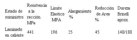El estado de entrega del acero es laminado en caliente, por lo tanto.