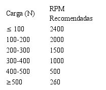 Conforme a los resultados de las pruebas realizadas y para evitar altas vibraciones y altos niveles de ruido, se aconseja manejar las revoluciones de la tabla 3 según la carga aplicada.
