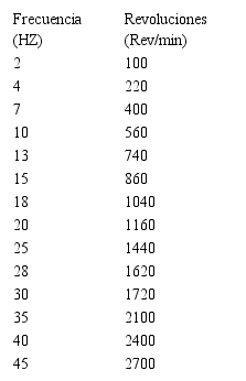 El motor respondió satisfactoriamente a las pruebas con altos y bajos niveles de esfuerzo, el motor no se calentó ni presentó ningún inconveniente. En cuanto al variador de frecuencia su funcionamiento fue bueno y con él se manejaron variedad de revoluciones en el ensayo. En la tabla 4 se aprecia algunas revoluciones según la frecuencia del variador de la máquina.
