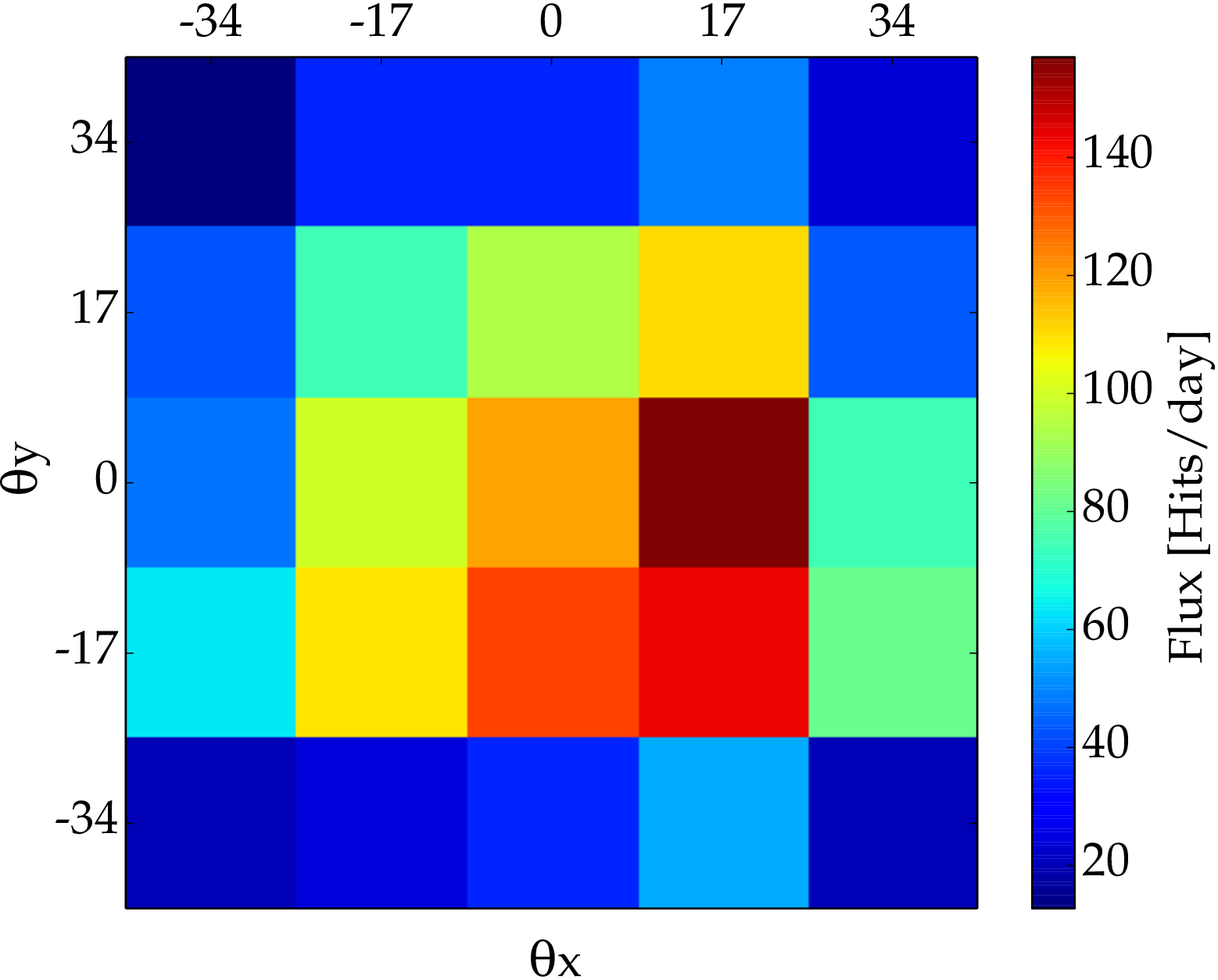 The background flux histogram provides information on the acceptance of the detector and how to carry out the calibration process to get a fair distribution of hits rate.