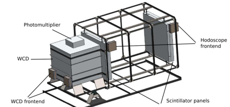 This is composed by two scintillator panel hodoscope with their respective electronic frontend and a WCD which performs the energy loss estimation of the events coming from the volcano.