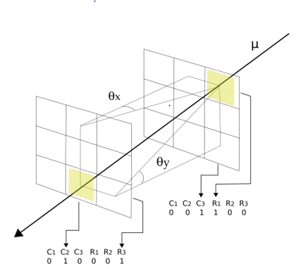 (1) where n is the number of rows of one scintillator panel. In this case, n = 3 then nT = 25. The trajectories are expressed in terms of the angles