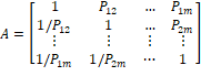 Las opiniones expresadas por los entes decisores, son recogidas en una Matriz de Comparación para aplicar el procedimiento matemático que permite establecer prioridades a partir de elementos del álgebra matricial (vectores y valores propios). La representación general de las restricciones lógicas en una Matriz de Comparación, se muestra a continuación en la figura 2.