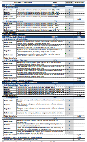 *ENTREGA: este criterio está relacionado con la capacidad del aliado estratégico para cumplir con las condiciones y la documentación de entrega especificadas.