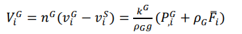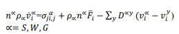 (11)En la que es la aceleración por gravedad o la fuerza de gravedad por unidad de masa y son los parámetros que describen la interacción entre las fases y , que se define como: