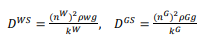 (12)En la que kW y kG son los coeficientes de permeabilidad para la fase acuosa y la fase aire, respectivamente, que se dan en L/T (unidades). Dejando de lado la aceleración y la interacción entre el aire y el agua, la ecuación del equilibrio del momento se reduce a la ecuación de equilibrio para cada fase, obtenida como: