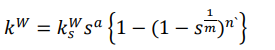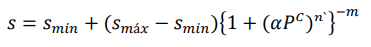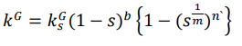 (20)Donde las variables , y son parámetros de ajuste de la forma de la curva característica de retención de agua, teniendo que y son los valores máximos y mínimos para saturación, respectivamente. Los efectos del grado de saturación en la permeabilidad del aire y del agua se muestran a partir de las ecuaciones 21 y 22, respectivamente: