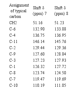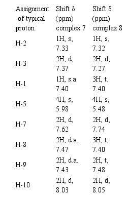 The table below (Table V) shows a comparison of 13C NMR signals for complexes 7 and 8.