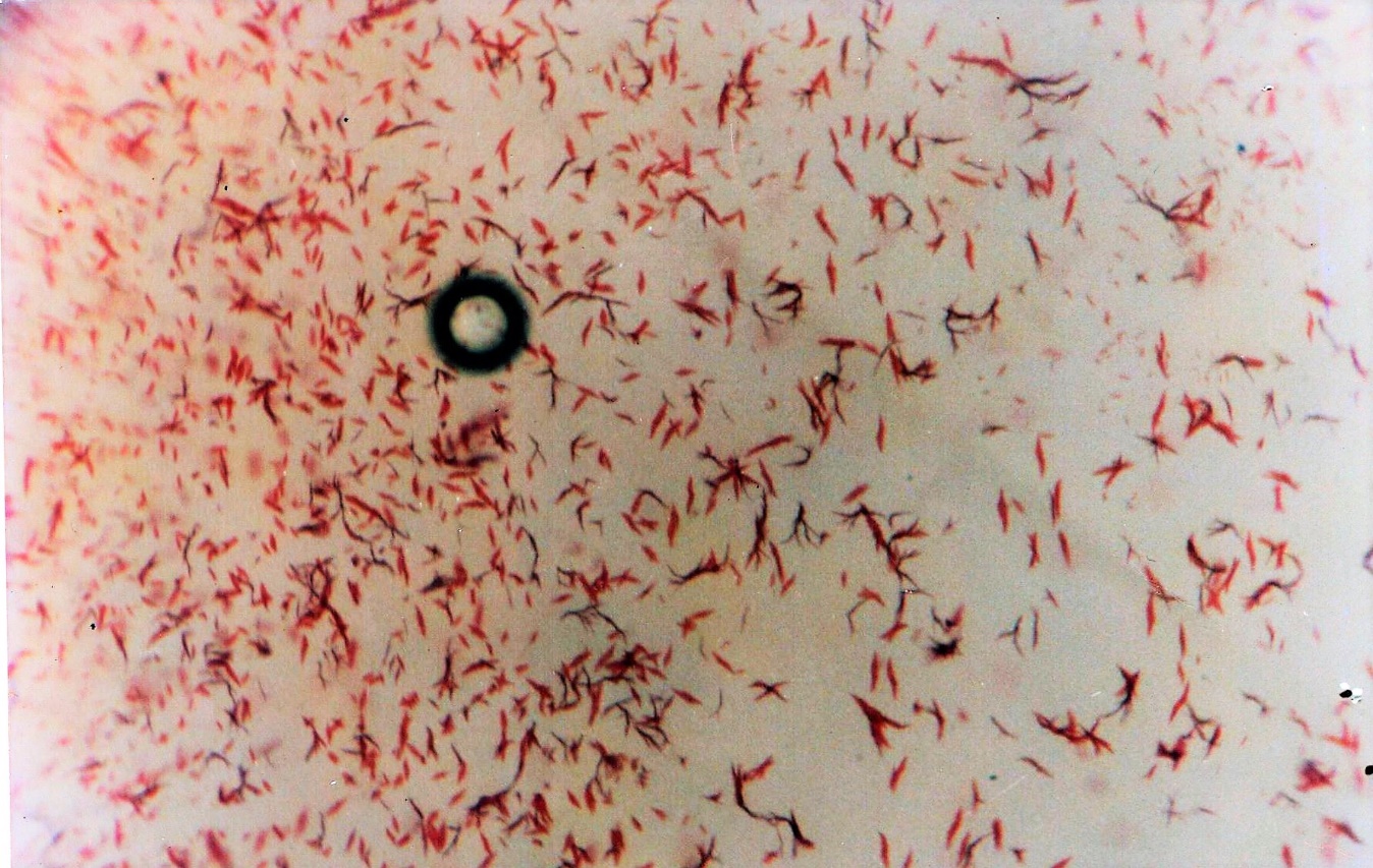 Positivo: Formación de cristales color naranja, de forma arborescente como las hojas de pino que se entrelazan.
