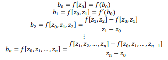 These coefficients are calculated according to the table of divided differences (Table 1).