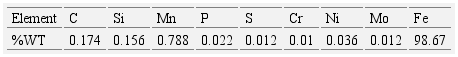 As received material was provided in a hot rolled condition. Chemical composition determined by optical emission spectrometry is showed in table I. Samples were heating above the critical temperature (910 °C) , holding for 300s for transformation to and air cooling. This Normalized heat treatment establishes a more uniform carbide size and distribution. Figure 1 shows optical micrograph of ferrite - perlite steel. The shape of ferrite grain is regular and perlite distribution appears in grain boundaries homogeneously distributed because of normalized heat treatment.