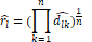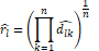 Estas matrices se construyen con base en la escala de calificación propuesta en la Tabla 1. y en las calificaciones lingüísticas dadas por el grupo de responsables para el caso de aplicación en el que se desee implementar la metodología. La media geométrica se aplica para integrar los pesos difusos adjudicados por los tomadores de decisiones. La media geométrica para números triangulares difusos se calcula a partir de la siguiente ecuación (1).[14]: