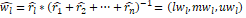 A cada uno de los elementos de la matriz se le realiza el cálculo de sus pesos difusos relativos, multiplicando su respectivo valor de comparación difuso por el inverso del total obtenido, de la siguiente manera (4):