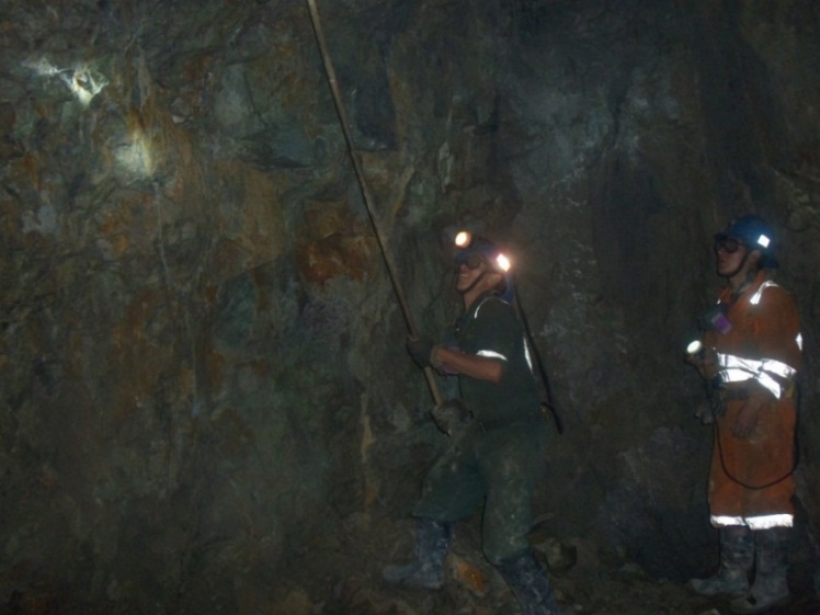 La tarea desatada de rocas, consiste en detectar y desatar la roca suelta en el techo, frente y laterales de la excavación o labor minera, a fin de garantizar que los trabajadores de las minas subterráneas trabajen en un ambiente seguro. En la Fig. 1 se muestran dos trabajadores mineros durante la realización de esta tarea. El procedimiento de trabajo es el siguiente:
