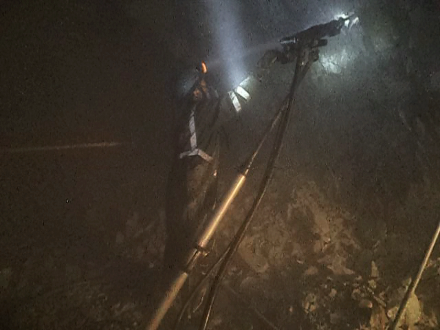 2. Trasladar los barrenos, las brocas, los guiadores, las mangueras de agua y aire, y la máquina en el frente donde se realiza la labor.