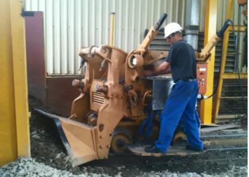 1. Recoger el material utilizando la pala neumática, en las galerías y lugares donde se pueda desplazar la máquina.