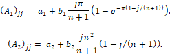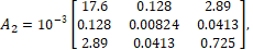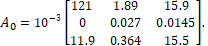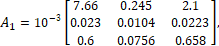 En el caso particular en el que la velocidad del viento es 12 pies por segundo, las matrices de coeficientes dinámicas son las siguientes.