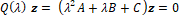 En gran parte, el estudio y los desarrollos teóricos de la ecuación (1) han sido motivados por un problema que surge con frecuencia en el análisis de sistemas estructurales y en problemas de vibración [5] [6] [7] conocido como el problema de los valores propios cuadrático, el cual consiste en encontrar números complejos λ y vectores no nulos z tales que Ec.2.