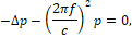 para una presión acústica p en un dominio acotado con condiciones de frontera y de impedancia apropiadas [26]. En esta ecuación, f es la frecuencia, c es la velocidad del sonido en el medio y es la impedancia, posiblemente compleja.