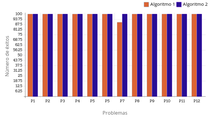 Este gráfico permite apreciar el buen comportamiento de los dos algoritmos, ya que el nivel de éxito fue prácticamente del 100%.