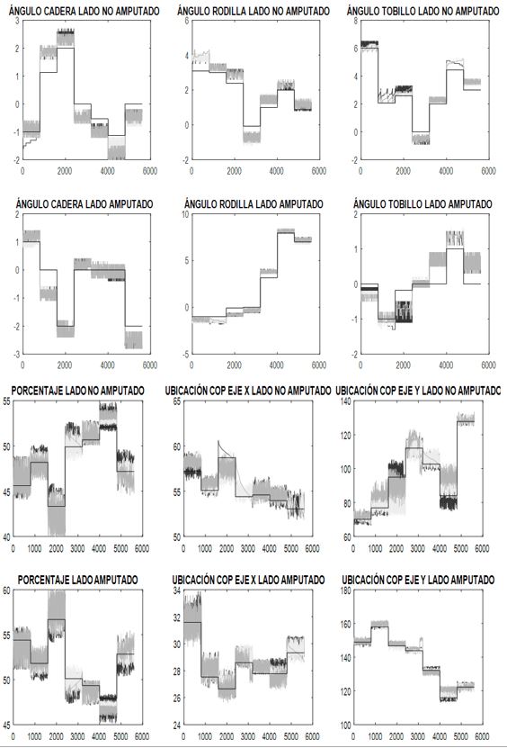El COP del lado amputado se encuentra medial y anterior al contralateral, acorde con [16]. Existe movimiento del COP en ambas extremidades en las direcciones medial-lateral y antero-posterior, comprobando que la bipedestación no es un estado estático [18,19,20]. La valoración de los cambios en el COP se realiza con el uso de la desviación estándar. La actividad de la extremidad contralateral en la dirección antero-posterior fue significativamente más alta comparada con el lado amputado, dicha conclusión está coherente con [16] y [21]. El movimiento medial-lateral del COP es bajo, siendo el lado amputado el de mayor variación en este plano. Por el movimiento del COP el sujeto debe compensar para no perder estabilidad, lo cual realiza con la posición de las articulaciones, de allí que la mayor variación en las articulaciones se presente en las rodillas, la otra articulación con alta variabilidad es el tobillo contralateral, lado donde se presenta la mayor variación del COP [19], [20]. La menor variación se da en el tobillo ipsilateral, confirmando su poca contribución a la estabilidad postural. Con respecto a la cadera, la contribución es mayor en el lado amputado.