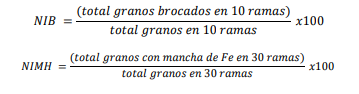 Para determinar los niveles de incidencia e infestación de las plagas se utilizó las formulas (1) sugerida por CENICAFÉ [5]: