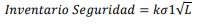 El siguiente paso es calcular el inventario de seguridad, tal y como lo muestra en (Ec.4). Para poder obtener este valor se debe tener la desviación estándar de la demanda pronosticada (σ1), el valor de k (el cual depende del nivel de servicio que se espera ofrecer al cliente final) y el lead time (L).