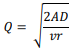 (3)El primer paso que se debe realizar es determinar la cantidad Q a solicitar. Normalmente se utiliza la fórmula del cálculo del Punto de pedido económico (EOQ), ver en (3).
