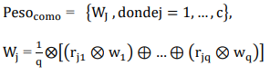 El peso de cada variable interna es dado por todos los integrantes del grupo decisor, que al aplicar la ponderación que se muestra en (Ec.3) se obtiene el peso general de cada “Qué”.
